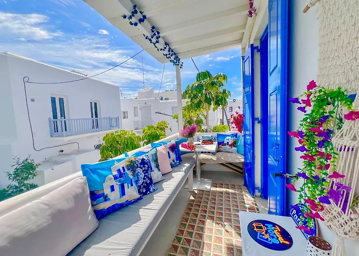 The 56 m² Mykonos Townhouse Apartment Megali Ammos offers views of the garden and a location just 600 metres from Megali Ammos Beach. Set fairly close to the Rarity Gallery, the apartment with a terrace overlooks the city.